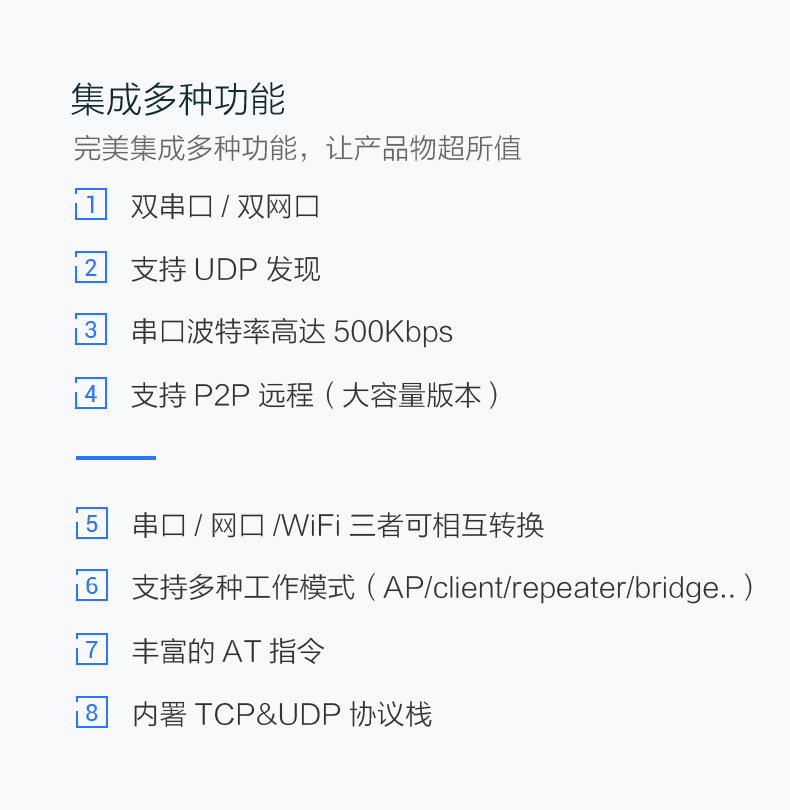 深耕行業(yè)十數(shù)載,累計服務(wù)超過10W+客戶,WiFi模組、藍牙模組、電源模塊等產(chǎn)品遠銷80多箇國家和地區(qū),爲客戶提供專業(yè)可靠的IoT模塊產(chǎn)品、強大的技術(shù)支持和貼心的售後服務(wù)保障,產(chǎn)品廣泛的應(yīng)用於智能家居、智能醫(yī)療、智能辦公、汽車電子及工業(yè)控制等領(lǐng)域。