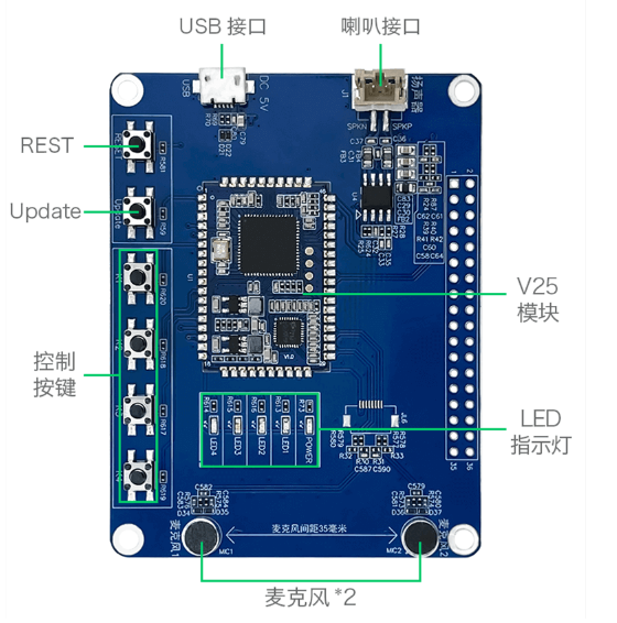 V25雙麥離線語音模塊是基於家居場景打造的語音交互方案,可實現(xiàn)語音控制,比傳統(tǒng)手動控制(機控、遙控、手機)更直接、自然和便利,有助於提升產(chǎn)品用戶體驗。該語音模塊具有豐富的系統(tǒng)外設(shè)資源,包括UART、I2C、SPI、PWM、ADC等。