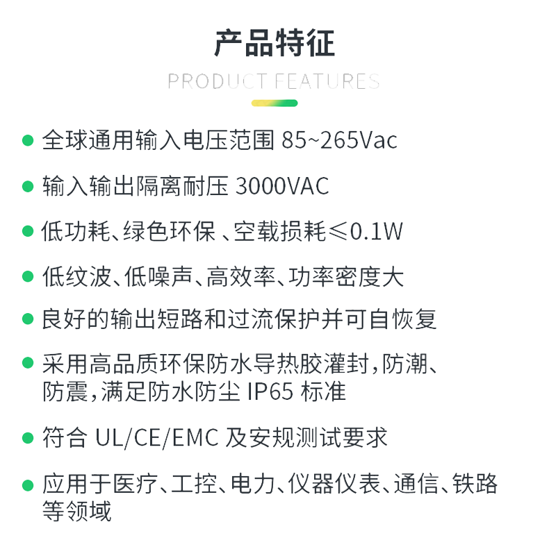 低功耗、綠色環(huán)保 、空載損耗<0.1W