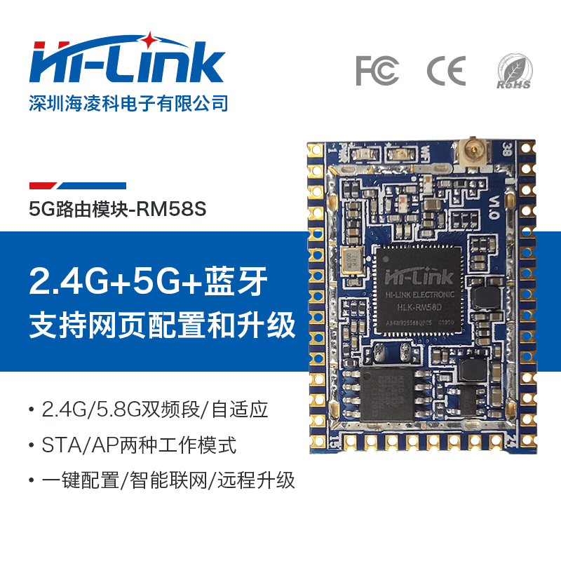 對(duì)於RM58S方案,主要的產(chǎn)品特性在於可以同時(shí)爲(wèi)設(shè)備提供2個(gè)無線頻段的無線信號(hào),分別爲(wèi)2.4G(繞射/穿牆能力強(qiáng))和5.8G(傳輸距離遠(yuǎn),抗干擾能力強(qiáng),傳輸速率快)無線信號(hào),對(duì)產(chǎn)品的兼容性更強(qiáng),在實(shí)際應(yīng)用中,雙頻Wifi模塊可以很好的利用兩者的優(yōu)點(diǎn),爲(wèi)產(chǎn)品提供更優(yōu)越的數(shù)據(jù)傳輸服務(wù),我們可以將其理解爲(wèi)在RM58S內(nèi)部集成了兩套無線網(wǎng)絡(luò)模塊(天線組),相較傳統(tǒng)的單天線模塊可以獲得更強(qiáng)的無線信號(hào)搜索能力以及覆蓋能力。