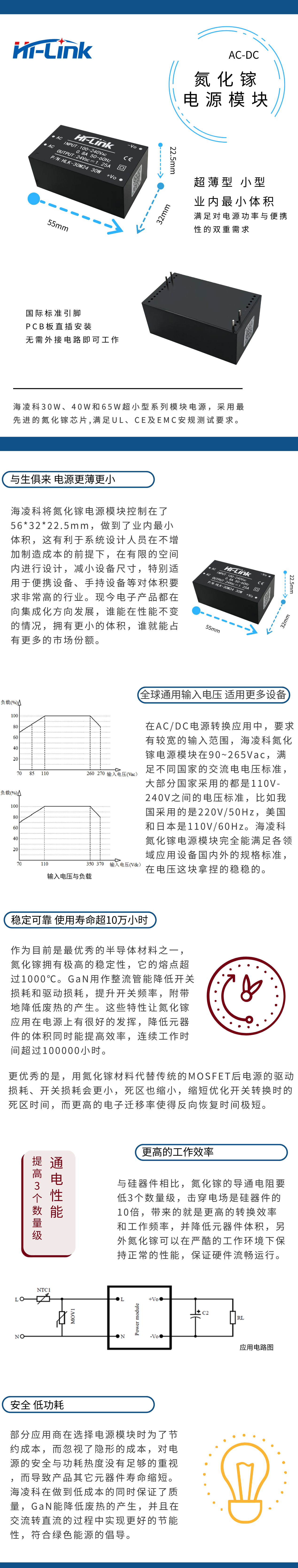 氮化鎵作爲(wèi)電源新材料並不突然,由於開(kāi)發(fā)成本太高,一直沒(méi)有被商用。海凌科研發(fā)部攻克這一難題,在工藝和技術(shù)上創(chuàng)新,首次推出30W、40W 和65W AC-DC氮化鎵電源模塊,做到了業(yè)內(nèi)最小體積電源模塊。目前海凌科30W、40W氮化鎵電源模塊已實(shí)現(xiàn)量產(chǎn),廣泛用於快充器、智能家居、自動(dòng)化控制、通訊設(shè)備、儀器儀表等領(lǐng)域。