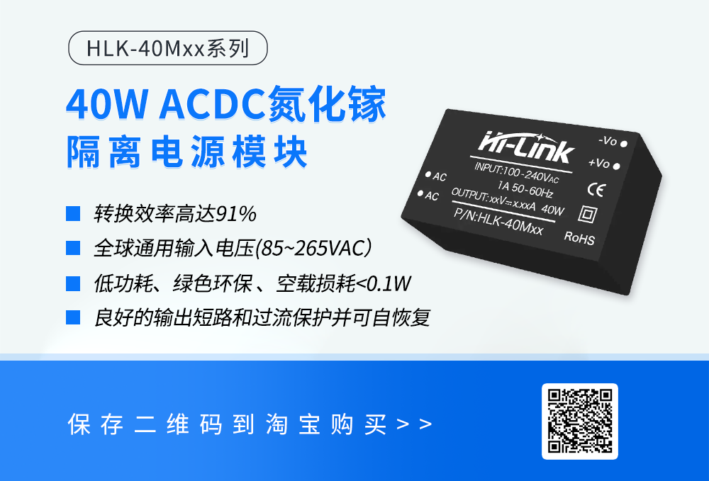 海凌科40W ACDC系列氮化鎵電源模塊,具有全球輸入電壓範圍、低溫升、低功耗、高效率、高可靠性、高安全隔離等優(yōu)點,轉(zhuǎn)換效率高達91%,應(yīng)用廣泛,性價比高。