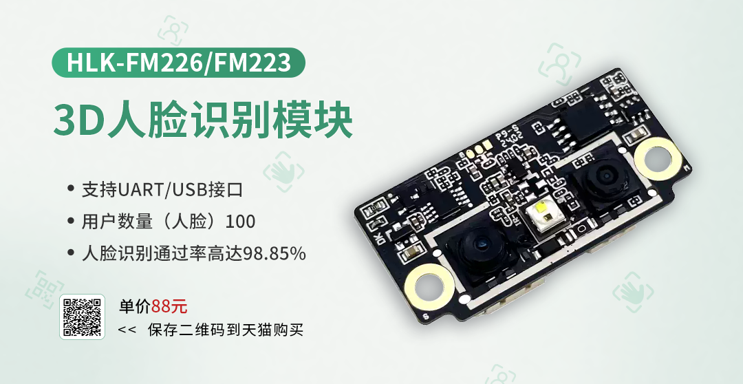 HLK-FM888是一款紅外+可見光雙目人臉識別算法模組,內(nèi)嵌3D 活體檢測和深度學(xué)習(xí)動(dòng)態(tài)可見光人臉識別,搭載高像素的攝像頭,人臉存儲(chǔ)容量可達(dá)500人,小體積大容量,超高性價(jià)比,應(yīng)用簡單。