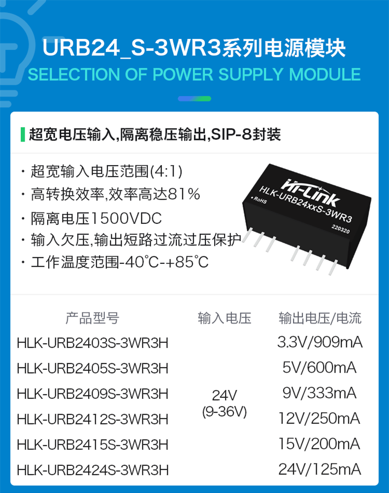 URA S-3WR3/URB S-3WR3系列產(chǎn)品是4:1輸入,隔離穩(wěn)壓輸出 3W。該產(chǎn)品為 SIP-8的引腳封裝,較高的效率,滿足-409℃~+85°C工作溫度,具有輸入欠壓保護,輸出過流和可持續(xù)短路保護功能??蓮V泛應用于工控、電力、儀器儀表、通信等領(lǐng)域。