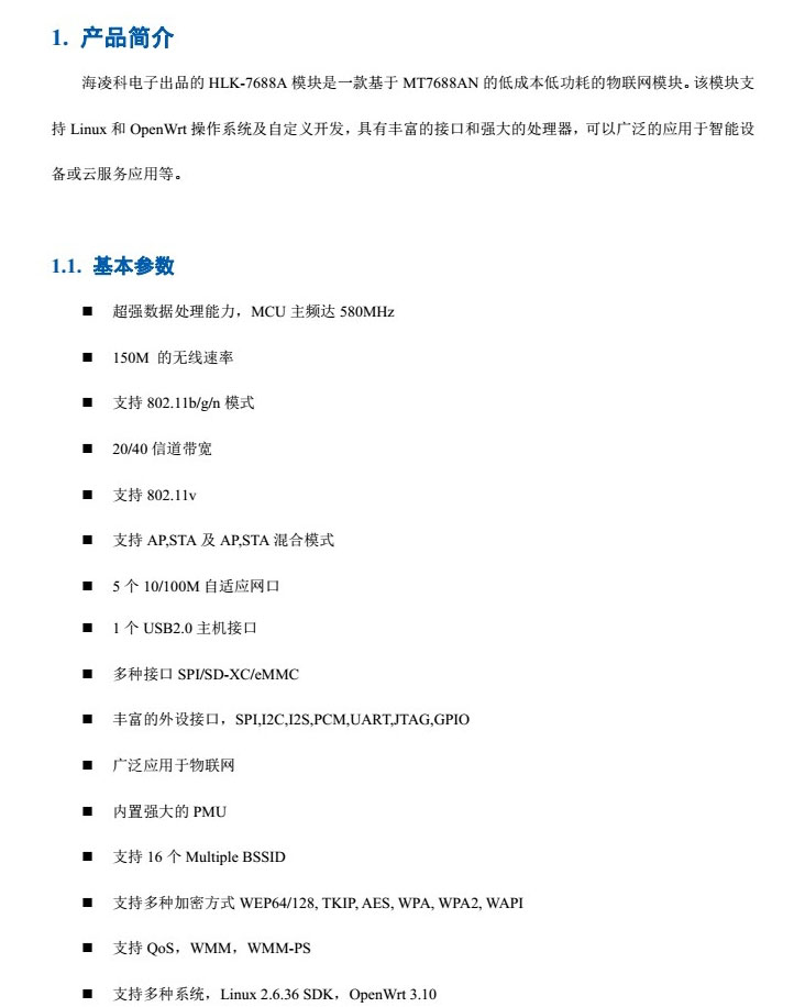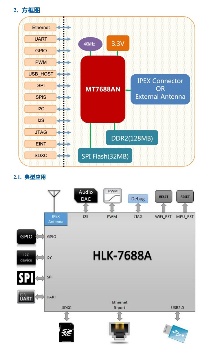 MT7688AN芯片;支持Linux/OpenWrt操作系統(tǒng)及自定義開(kāi)發(fā);具有豐富的接口和強(qiáng)大的處理器;