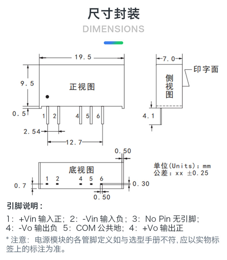 輸出短路保護(hù):可持續(xù)短路保護(hù),自動恢復(fù)小型 SIP 封裝,塑料外殼