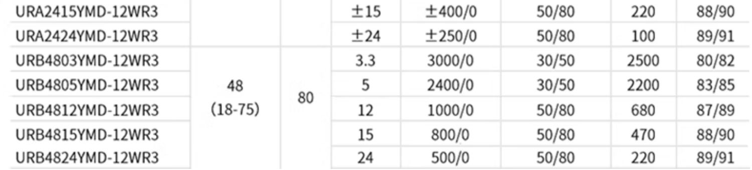 UR(A)B YMD-12WR3 系列產(chǎn)品輸出功率為 12W,4:1 寬電壓輸入范圍,效率高達 91%,1500VDC的常規(guī)隔離電壓,允許工作溫度-40Cto+85℃,具有輸入欠壓保護,輸出過壓、過流、短路保護功能,裸機滿足CISPR32/EN55032CLASSA,廣泛應用于醫(yī)療、工控、電力、儀器儀表、通信、鐵路等領域。