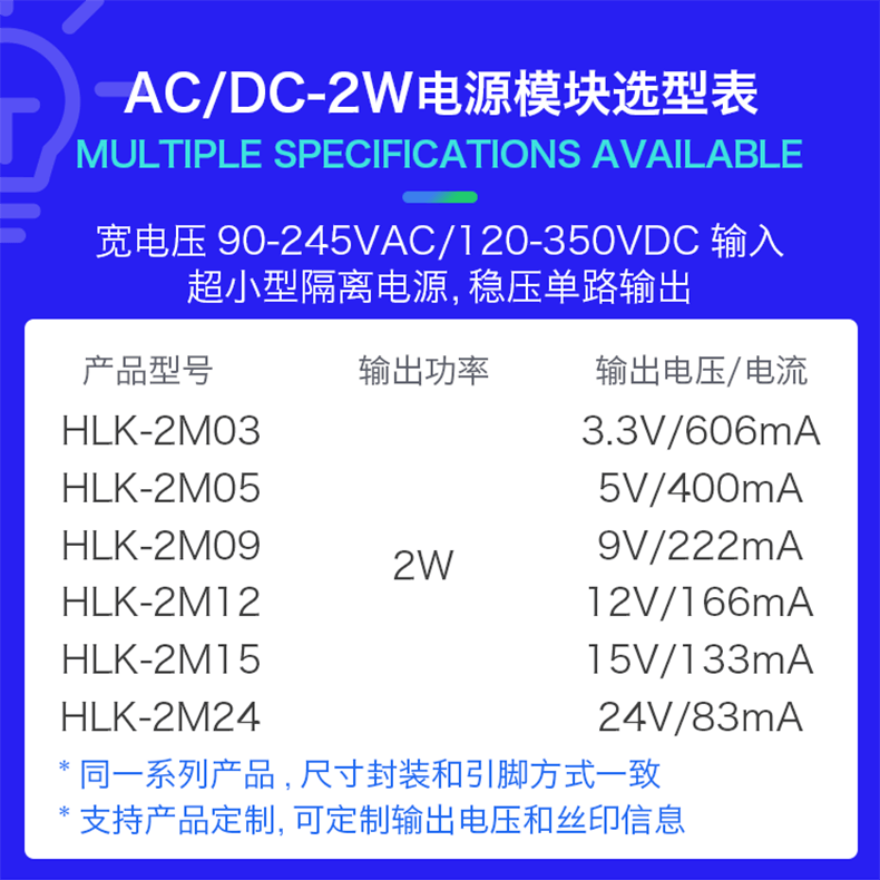 2W 超小型系列模塊電源是海凌科電子為客戶設計的小體積,高效率模塊電源。具有全球輸入電壓范圍、低溫升、低功耗、高效率、高可靠性、高安全隔離等優(yōu)點。已廣泛用于智能家居、自動化控制、通訊設備.儀器儀表等行業(yè)中。